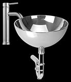 Stainless Sinks Stainless Stainless Steel, Mercury Vessel Sink, Curved Faucet | 12450Double Layer Stainless Steel Pedestal Vessel Sinks are stunning in look and design! The sturdy double layered vessel sink allows the overflow to be concealed and out of sight! Also the double layer construction prevents condensation and noise unlike other flimsy metal vessel sinks. Easy to clean, easy to install and easy on the eyes! Includes chrome single hole lever faucet with 500,000 cycle ceramic cartridge which means it will last! Also includes push-button, pop-up drain.