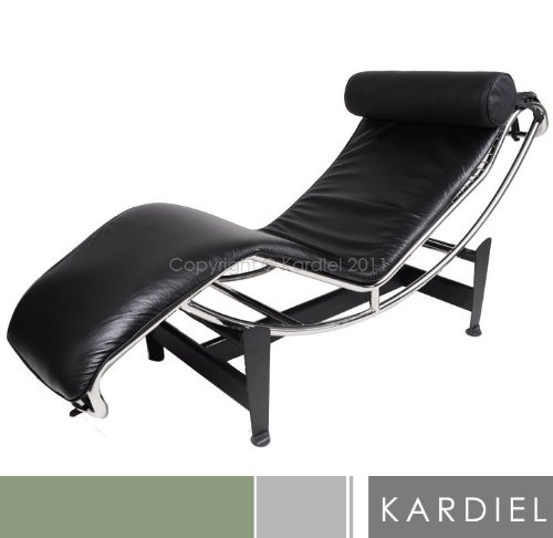 Kardiel Le Corbusier Style LC4 Chaise Lounge, Black Aniline Leather