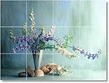 Flower Picture Ceramic Tile Mural F010. 36x48 Inches Using (12) 12x12 ceramic tiles.