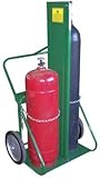 | ✚✚✚ Saf-T-Cart 401-14FW Cart Sc-10 Wheel 24" Ccw/Firewall - Wheel Diam=14 in, Wheel Width=1 3/4 in, Wheel Type=Semi-Pneumatic, Cylinder Diam=24 in [Max], Platform Width=26 in, Platform Depth=13 in, Height=62 in, Width=38 in, Handle Type=U-Handle, No. of Wheels=2, Material=Steel, Platform Material=Steel, Color=Green, Wt.=44 lb, Testing and Approvals: Meets and exceeds OSHA 1910.253 - Has a fire-resistance rating of at least 1/2 hour - The barrier shall interrupt all lines of sight between cylinders