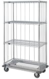 | ✚✚✚ Quantum Storage Systems MD2460C46RE 4-Tier Wire Shelving Mobile Cart with 3-Sided Enclosure Using Rod and Tab, Dolly Base, Chrome Finish, 24" Width x 60" Length x 70" Height Genuine Quantum modular wire systems offer a unique combination of shelf and post sizes in a variety of finishes to compliment any application. The split sleeve and grooved numbered posts allow for easy and quick assembly. The all welded shelf construction is supported with architectural wire trusses to provide between 600 lbs and 800 lbs capacity per shelf. Unit also includes: 4 - 5" swivel poly stem casters, 2 with brakes, 4 donut bumpers. 1 Year warranty agianst defects.