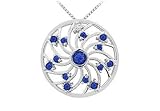 | ✚✚✚ Sapphire and Diamond Pendant : 14K White Gold - 0.75 CT TGW Sapphire and Diamond Pendant : 14K Whit A bezel-set blue round sapphire takes the center stage surrounded by smaller brilliant-cut sapphires and set atop a brilliant-cut diamond adds a touch of style. Made in 14K white gold this pendant has a total weight (TGW) of 0.75 ct.