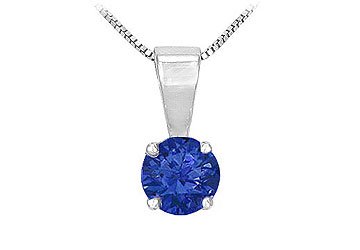 Sapphire Solitaire Pendant : 14K White Gold - 1.00 CT TGW Sapphire Solitaire Pendant : 14K White Go .