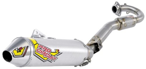 FeaturesPro Circuit has numerous championship victories to their credit in the motorcycle and ATV industry because of their amazing performance, durability and style.The Pro Circuit T-4R GP Complete Exhaust is the same performance exhaust that the Pro Circuit factory race team uses, as well as factory Suzuki and Kawasaki, but made from stainless steel for maximum value.Pro Circuit developed the T-4R GP complete exhaust system to deliver improved throttle response and increase horsepower throughout the RPM range.As the T-4R GP Complete Exhaust system has been designed and constructed for race performance, it does not include a spark arrestor.Top-of-the-line performance and power.T-4R features stainless steel construction.Tapered headpipe for better overall power from bottom to top end.Specially designed mounting bracket for increased strength and durability.Internal design reduces noise output; meets 94dB AMA and FIM sound limits.Welded end cap design.Silencer and end cap graphics.You search for the best analysis