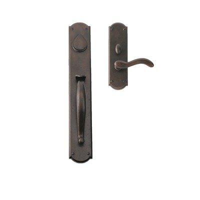Entry Set Front Door Handle with Jefferson Lever Handing: Left Handing, Backset: 2.75"?EN-1905-H3-LH-2 3/4"-1 3/4"-BP Handing: Left Handing, Backset: 2.75" Features: -Door handle.-Fits 1.75" door width. Color/Finish: -Bronze patina living finish. Dimensions: -Overall dimensions: 11'' H x 2.5'' W x 2.38'' D. Collection: -Entry Set collection.