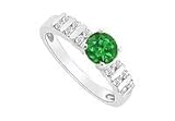 Emerald and Diamond Engagement Ring : 14K White Gold - 0.50 CT TGW Size 10