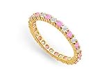 Pink Sapphire and Diamond Eternity Band : 14K Yellow Gold 1.00 CT TGW Size 5.5